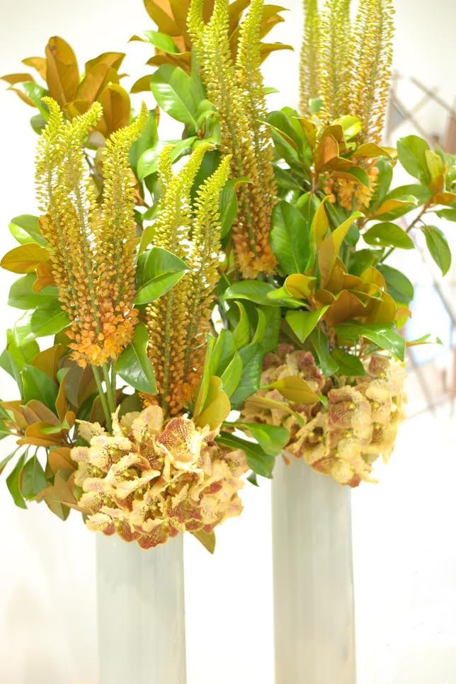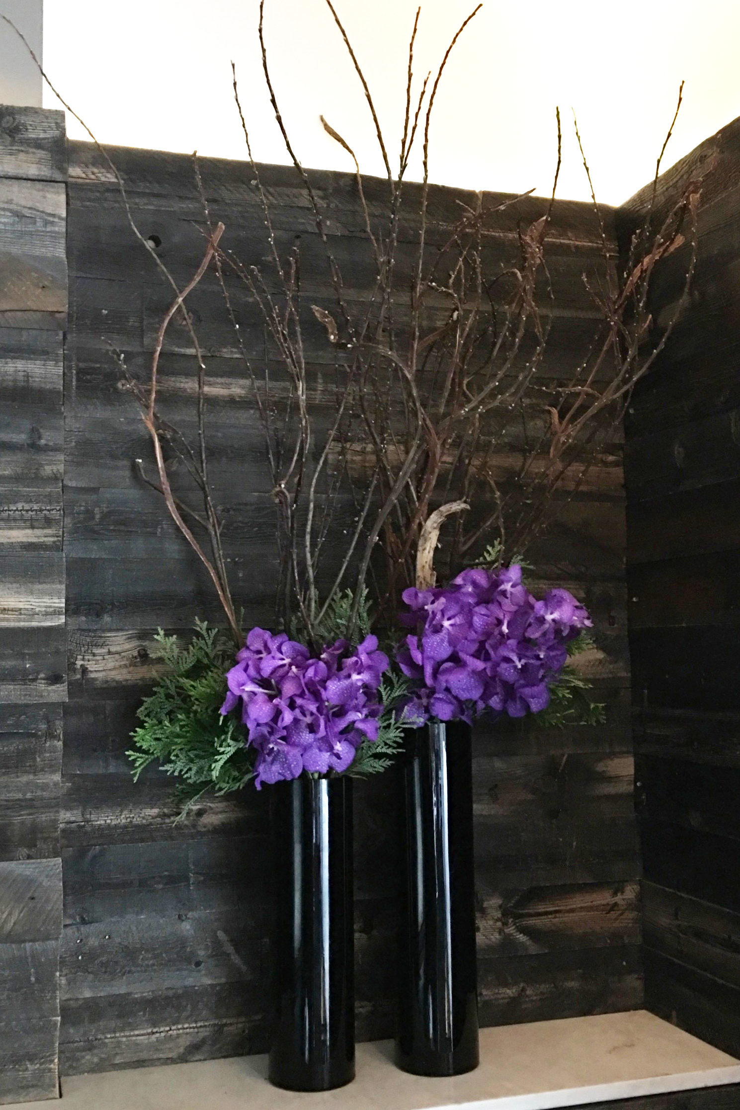 桜色の花、ミモザ、紫陽花、初夏の枝、
